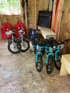 Franconia Basecamp has great outdoor gear, much of it consignment gear, and they have e-bike rentals and do bike repair as well. And plenty of bikes to rent at the White Mountain Bike Shop in Franconia, or stop by the Gear Library in Bethlehem where you can rent outdoor gear, including kids bikes, for free!